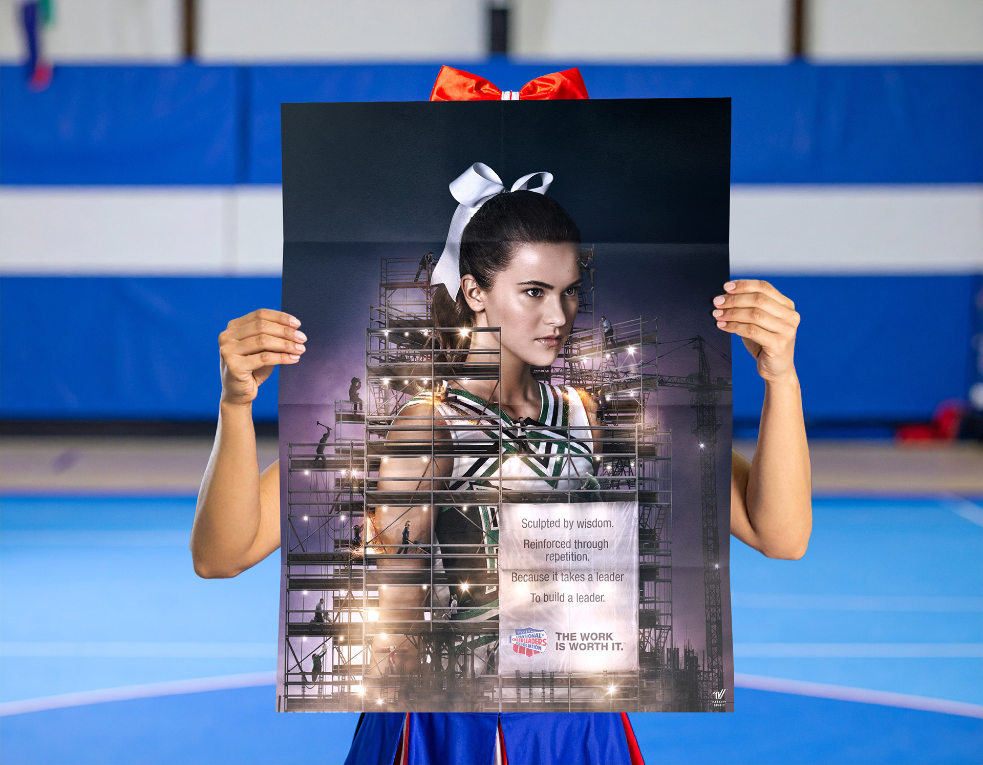 NCA’s benefits go far beyond cheer skills, so we highlighted the character that's built in their camps and competitions. The ads, quite literally, depict that growth—each athlete under construction by tiny workers on scaffolding, nodding to the transformation that happens at every NCA event.